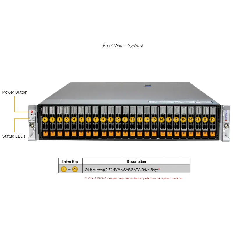 • 24个热插拔2.5"NVMe硬盘位